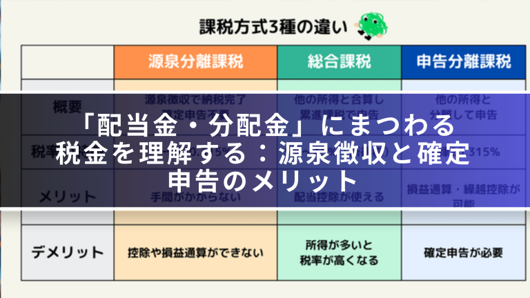 この記事を通じて、配当金・分配金にかかる税金の仕組み、そして「確定申告」という一手間がどれほど有利に働くのかを、一緒に学んでいきましょう。