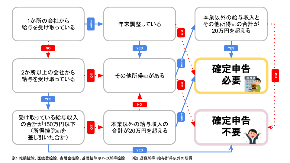 以下の条件に当てはまる方は、基本的に確定申告は不要です。