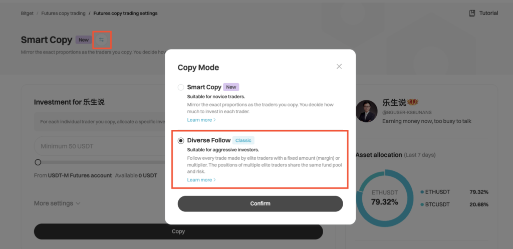 Bitgetでは、以下の2つの主要なコピートレードモードが提供されています。